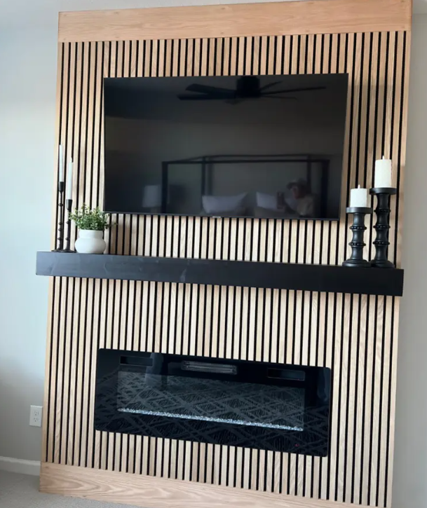 El revestimiento de paredes con listones de madera es una solución moderna para combinar el estilo con el aislamiento acústico. Actualmente muchas grandes superficies de bricolaje venden estos paneles acústicos de madera, para que el cliente diseñe su habitación o salón que quiere decorar a su gusto.